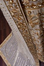 6 yards silk chiffon saree pants which embroidered scalloped borders paired with embroidered pants and beautifully embellished.