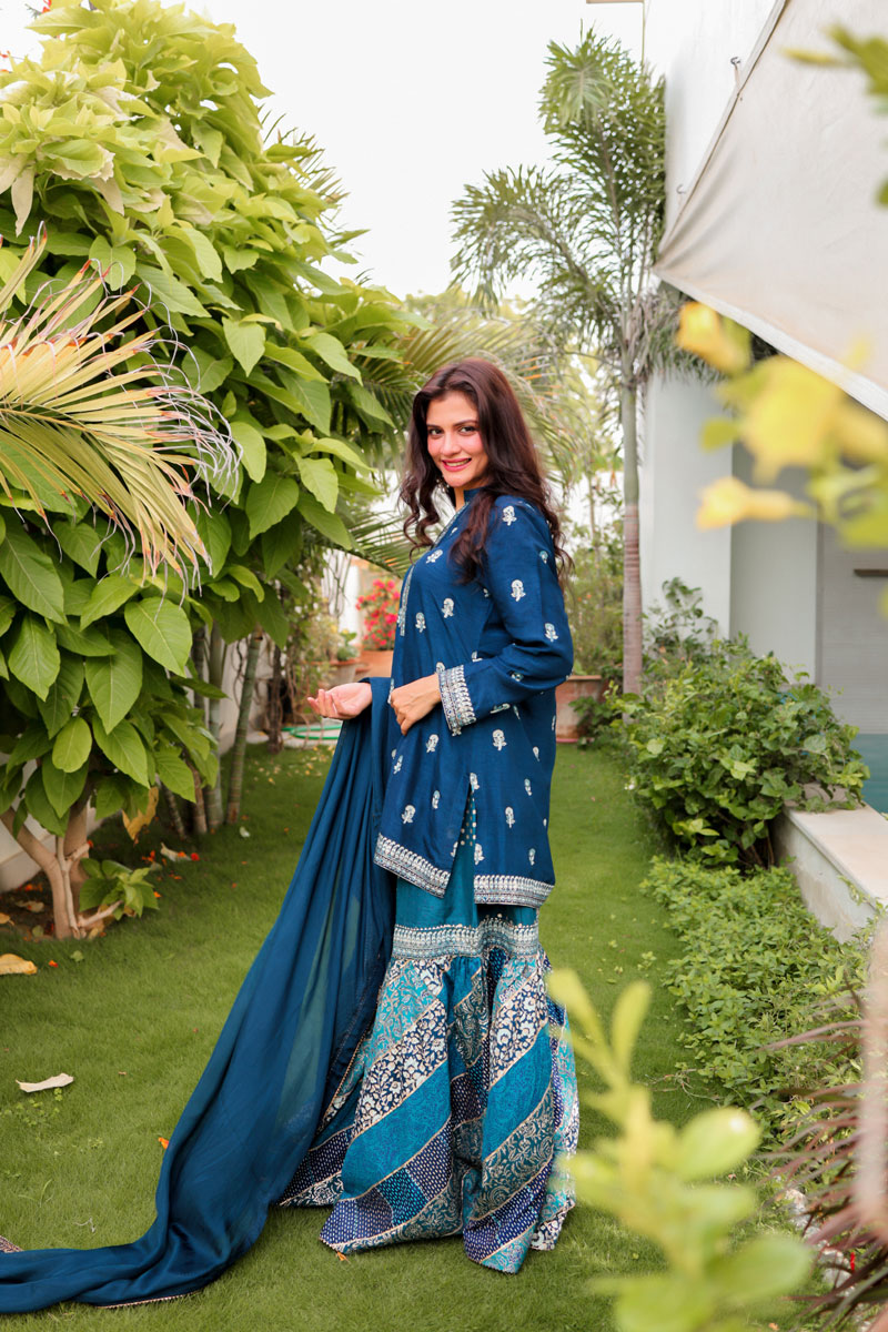 Shirt and Gharara: Bamber Raw silk